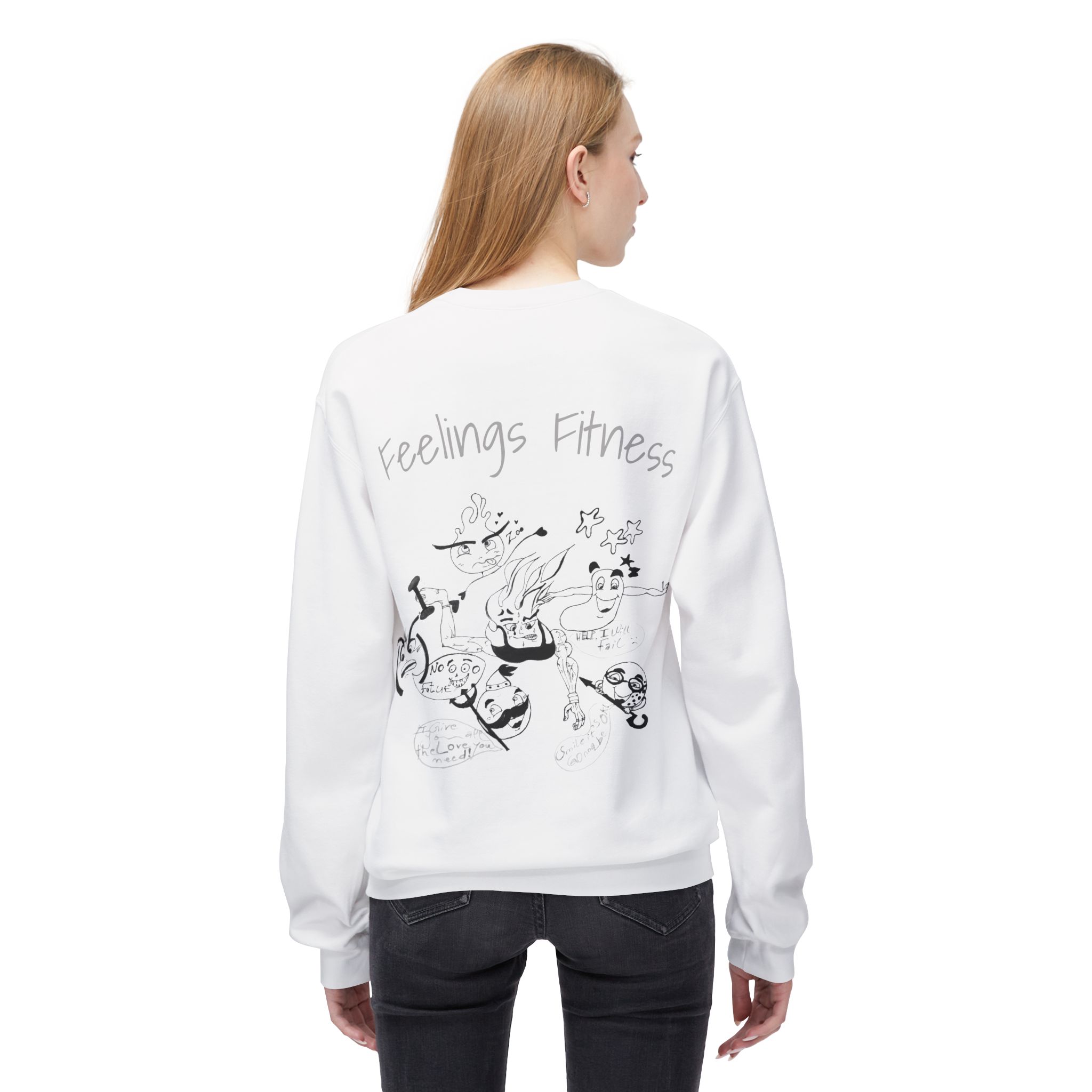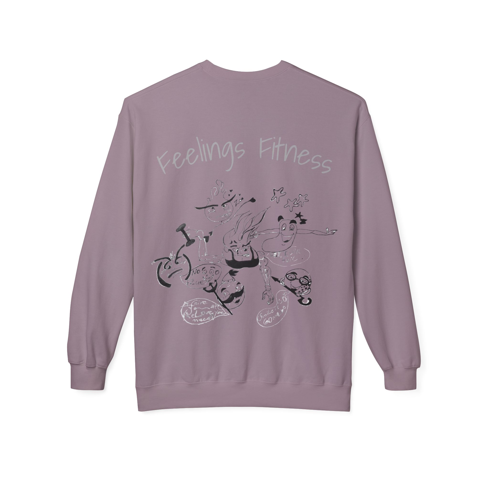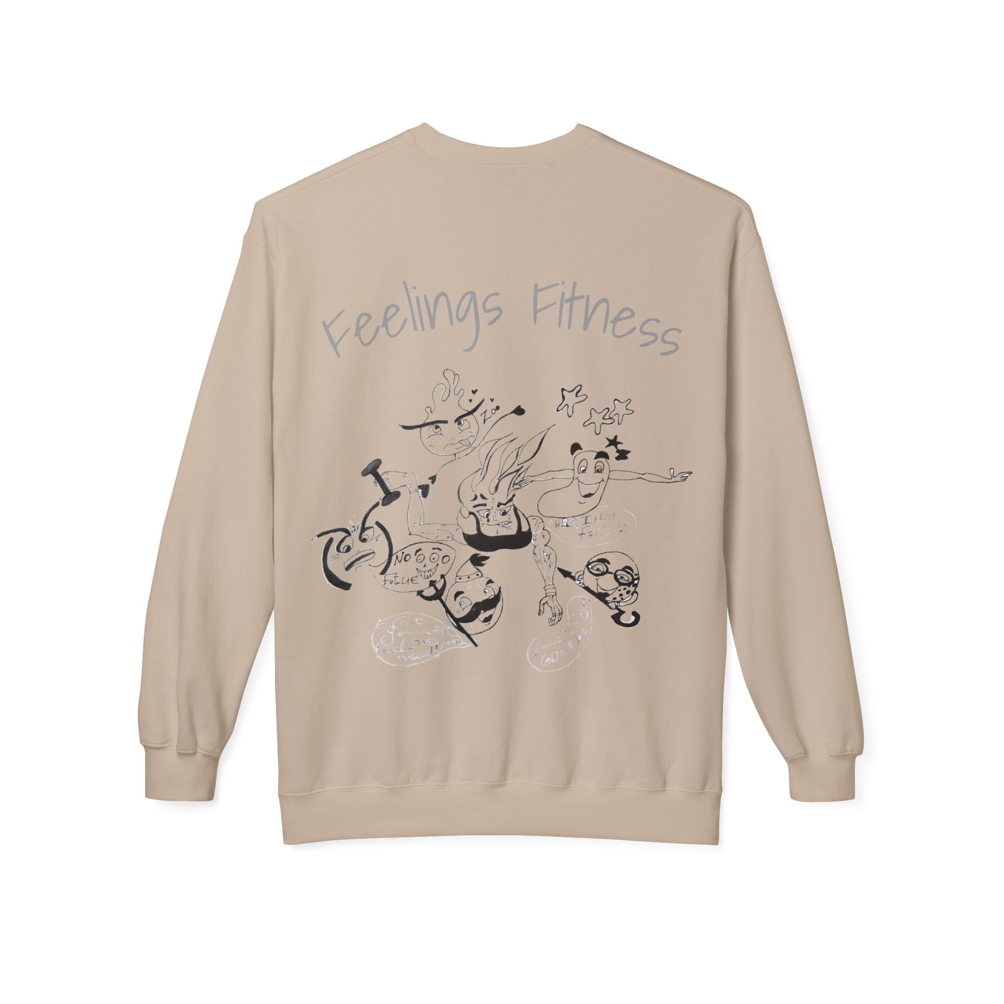 This midweight fleece crewneck carries a hand-drawn character that sits somewhere between sweat and story—part workout grit, part quiet feeling. Wear it on slow mornings after a run, on coffee shop breaks between sets, or while sketching in the corner of your favorite studio. The relaxed silhouette and dropped shoulders let movement come first; the soft cotton-blend interior offers warmth without weight. The illustration reads like a private diary entry: expressive lines, gentle tension, and an honest look that connects with anyone navigating fitness and emotions at the same time. It feels like something you’d reach for after a hard session or during a low-key evening—comfortable, familiar, and quietly expressive.